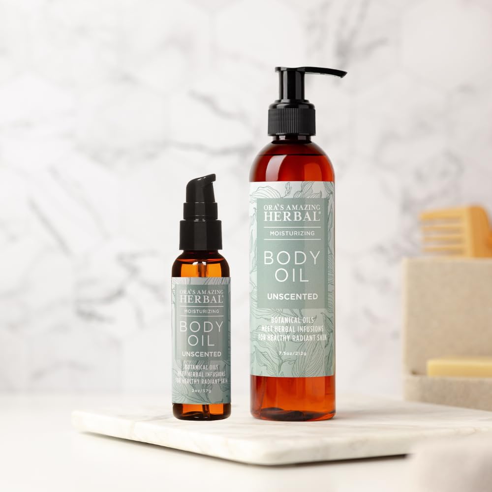 - Ora’s Amazing Herbal Unscented Body Oil, is an effective, well absorbing, moisturizing oil for body, hands, and is a wonderful bath oil. Free of Parabens, Synthetics, Gluten, Grains and Synthetic Fragrances. Never Tested on Animals Spreads and absorbs quickly and completely.
