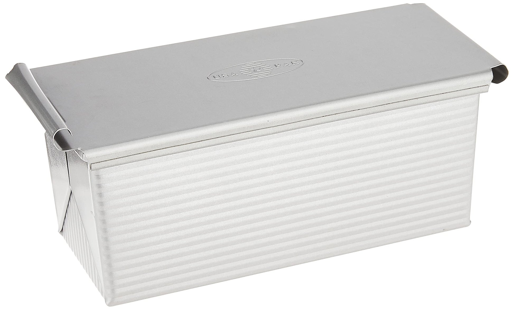 Details: The USA Pan Pullman Loaf Pan and Cover measures a full 9 x 4 x 4 inches* and provides home bakers with an easy way to bake the perfect, fine-grained square breads for sandwiches and French toast. With a patented AMERICOAT Plus non-stick silicone coating, the USA Pan Pullman Loaf Pan and Cover allows for easy clean-up. AMERICOAT Plus is PTFE, PFOA, and BPA free. With a sliding lid cover that is designed to ensure that rising bread dough will swell uniformly into a flat top, bakers will enjoy delicious square yeast breads that will finish with flaky golden brown crust and nice even sides that are perfect for cutting into beautifully uniform slices. Every USA Pan is made in the USA and has been designed with the same standard high performance features that commercial bakers enjoy including aluminized steel and heavy gauge steel construction that allows for even heat distribution and maximum service life. USA Pan Pullman Loaf Pan and Cover’s unique fluted surface design facilitates air circulation and also maximizes pan strength, which helps to resist warping. The USA Pan Pullman Loaf Pan and Cover also features a steel wire in the rim, which provides extra strength and further provides resistance to warping. USA Pan bakeware is long-lasting, durable, reliable. USA Pan’s professional grade bakeware helps everyday home bakers produce professional grade baked goods. USA Pan is a Bundy Family owned company, based in the Greater Pittsburgh, Pennsylvania area that has been producing high performance bakeware for over 50 years. *Dimensions represent baking surface, not overall pan size. Pullman Pan Cover Instructions: To remove, after pan has cooled enough to handle, hold pan so that the cover’s edge that curls up is facing you. With the palm of your other hand, tap the curled edge so that the cover slides away from you. To replace, slide the cover over the top edge of the pan starting with the edge that curls up. Make sure that the cover is pushed all the way on so that the small indentation on the cover locks into place. This will prevent the cover from moving while baking
