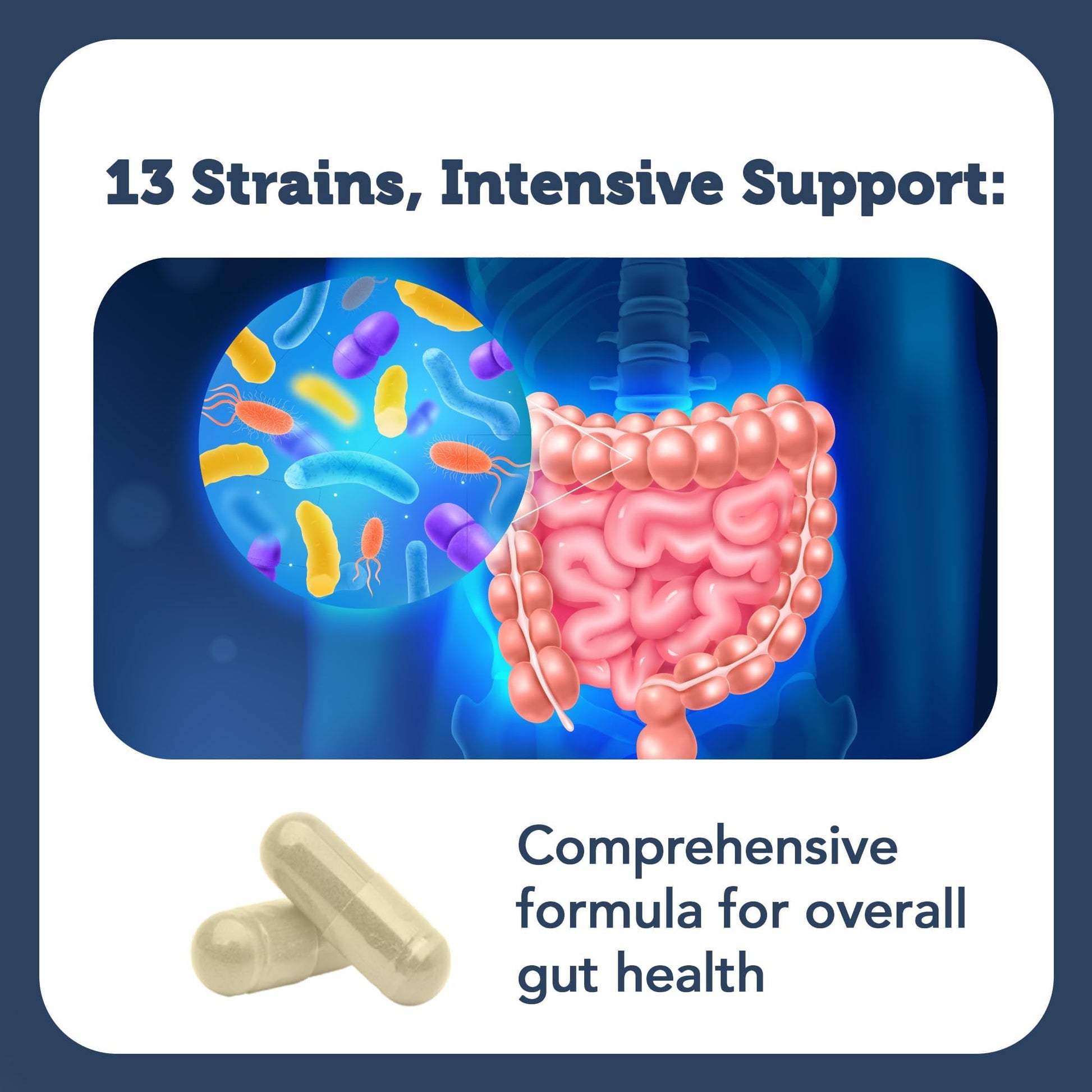 - Powerful Digestive Support: 100 billion CFU probiotic with 13 carefully selected strains including Lactobacillus and Bifidobacterium as well as Vitamin C and Zinc; Supports optimal gut health; Helps relieve bloating and gas; Promotes healthy digestion for both women and men