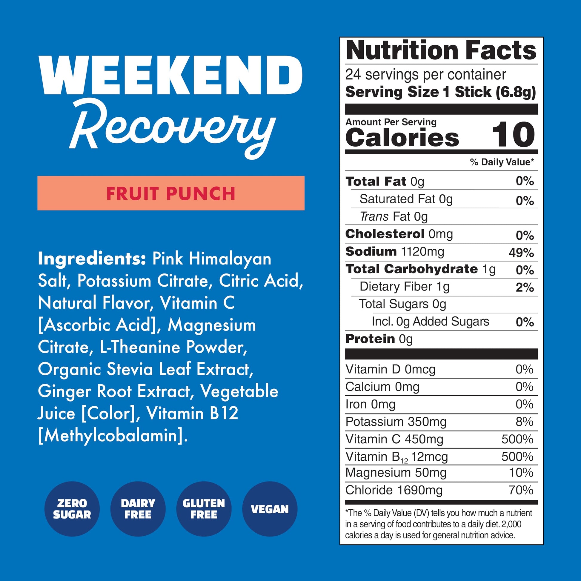 Waterboy Weekend Recovery | 3,200mg Electrolyte Powder Packets | Ginger + L-Theanine + Vitamins | No Sugar, All Natural, Gluten Free | 24 Drink Stick Mixes (Fruit Punch)