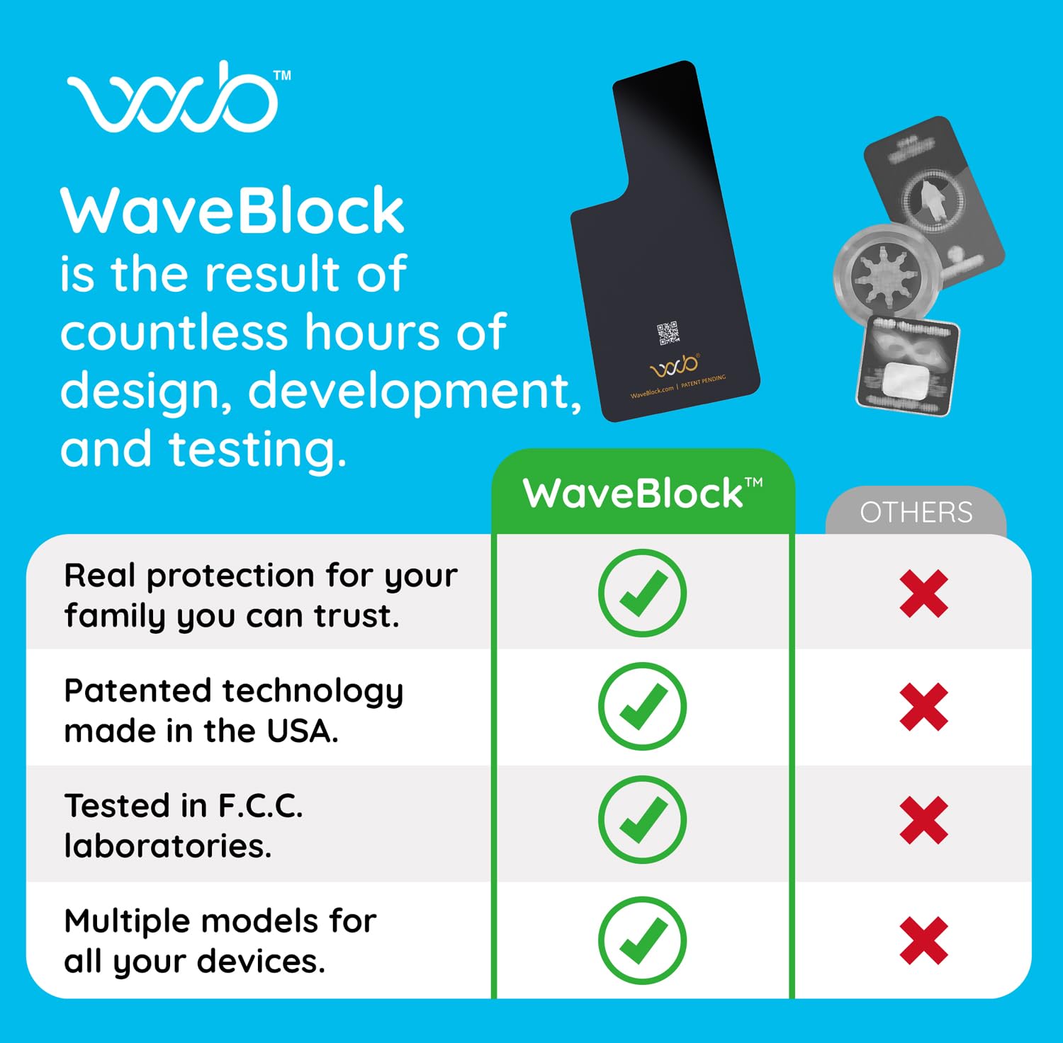 - RIDE OUR WAVE: At WaveBlock, we choose not to turn away from the latest and greatest tech but instead dedicate ourselves to developing support against potentially harmful waves from electronics; WaveBlock is the result of countless hours of design, and development.