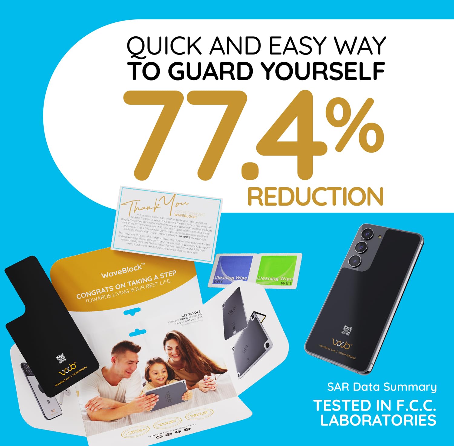 WAVEBLOCK Protection Sticker for Samsung Galaxy S23, Harm Blocker for Smartphone, 5G Shield Reduction, Fits Beneath Case, Tested in FCC Certified Lab