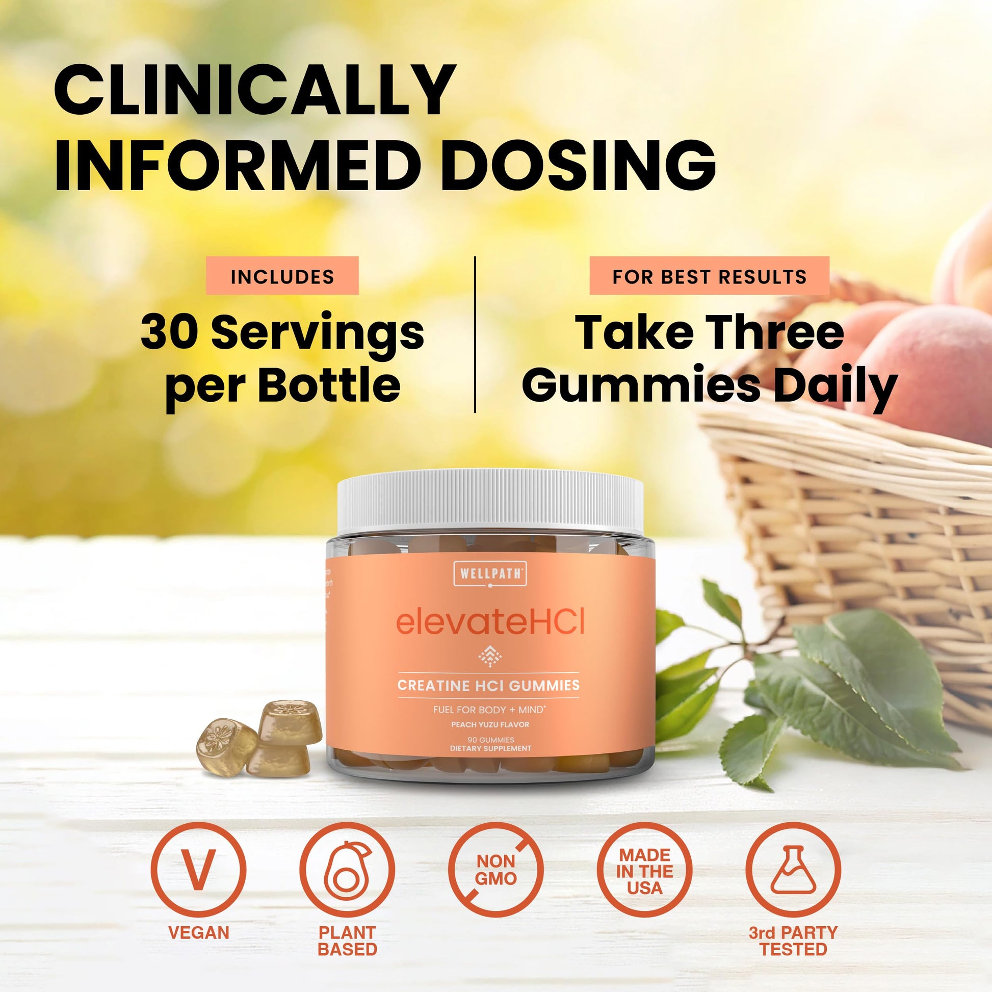 WellPath Creatine HCl Gummies 750mg – Chewable Creatine Gummies for Women and Men – 5g Creatine Monohydrate Equivalent - Cognitive & Performance Support – Vegan, Non-GMO, 90ct, Peach Yuzu Flavor
