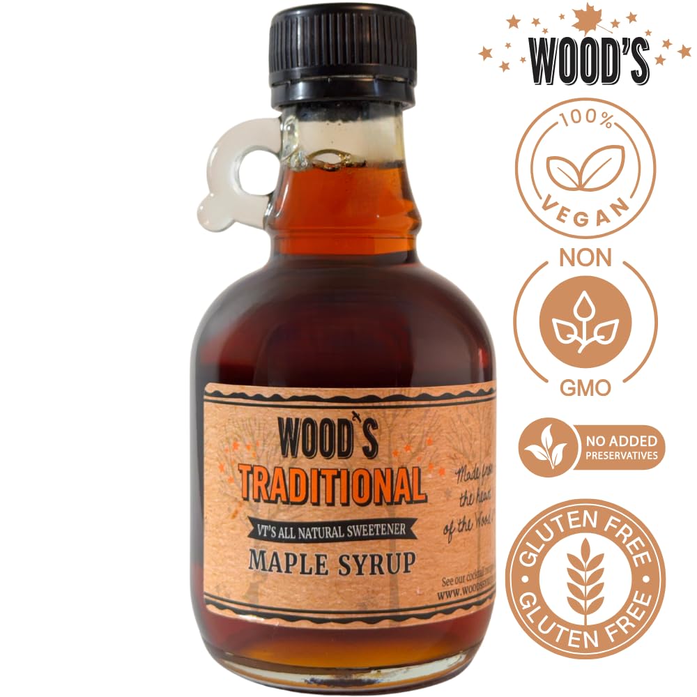 WOOD'S Vermont Maple Syrup – Traditional 100% Pure Maple Syrup | Small-Batch, Vegan Natural Sweetener | Grade A, Robust Taste | Perfect for Pancakes, Coffee, Cocktails & More | 8.45 Fl Oz (250mL)
