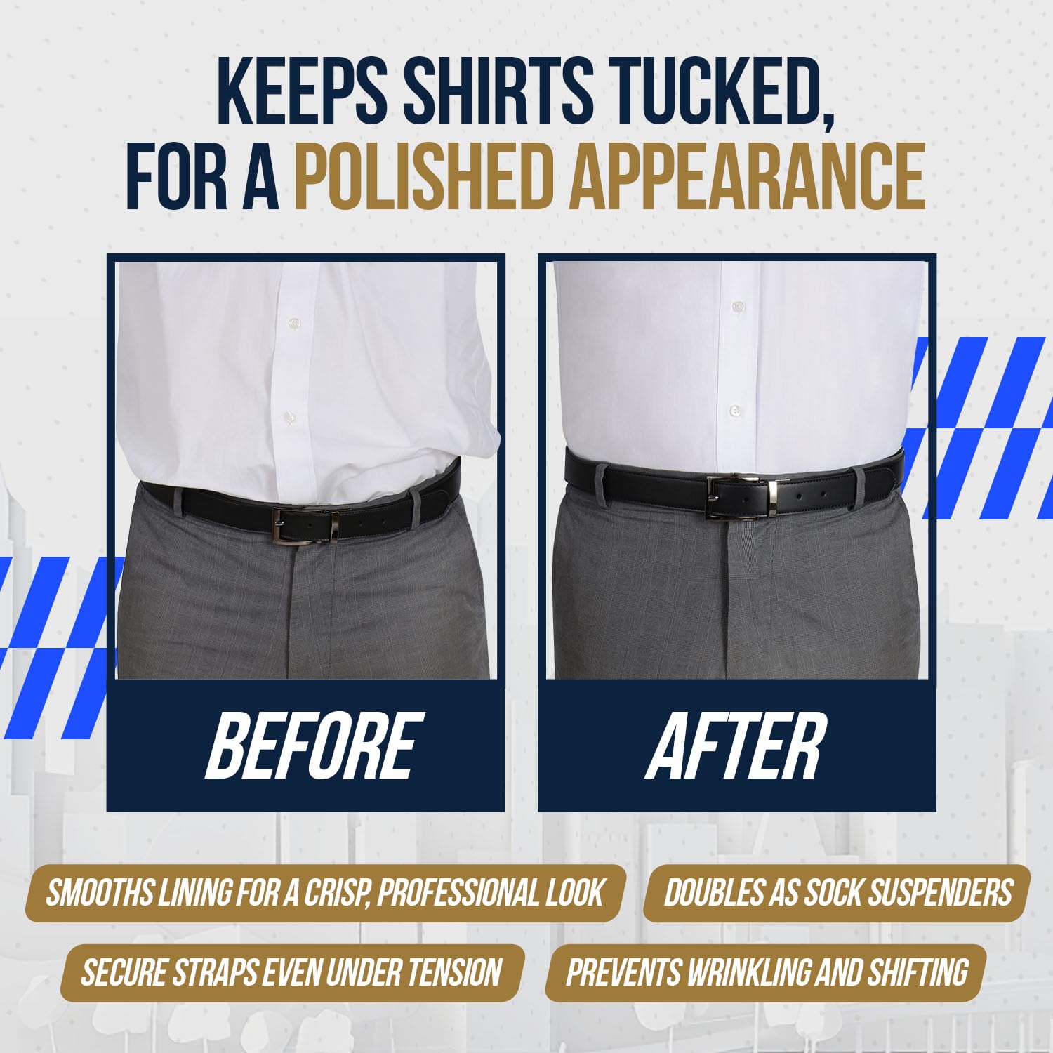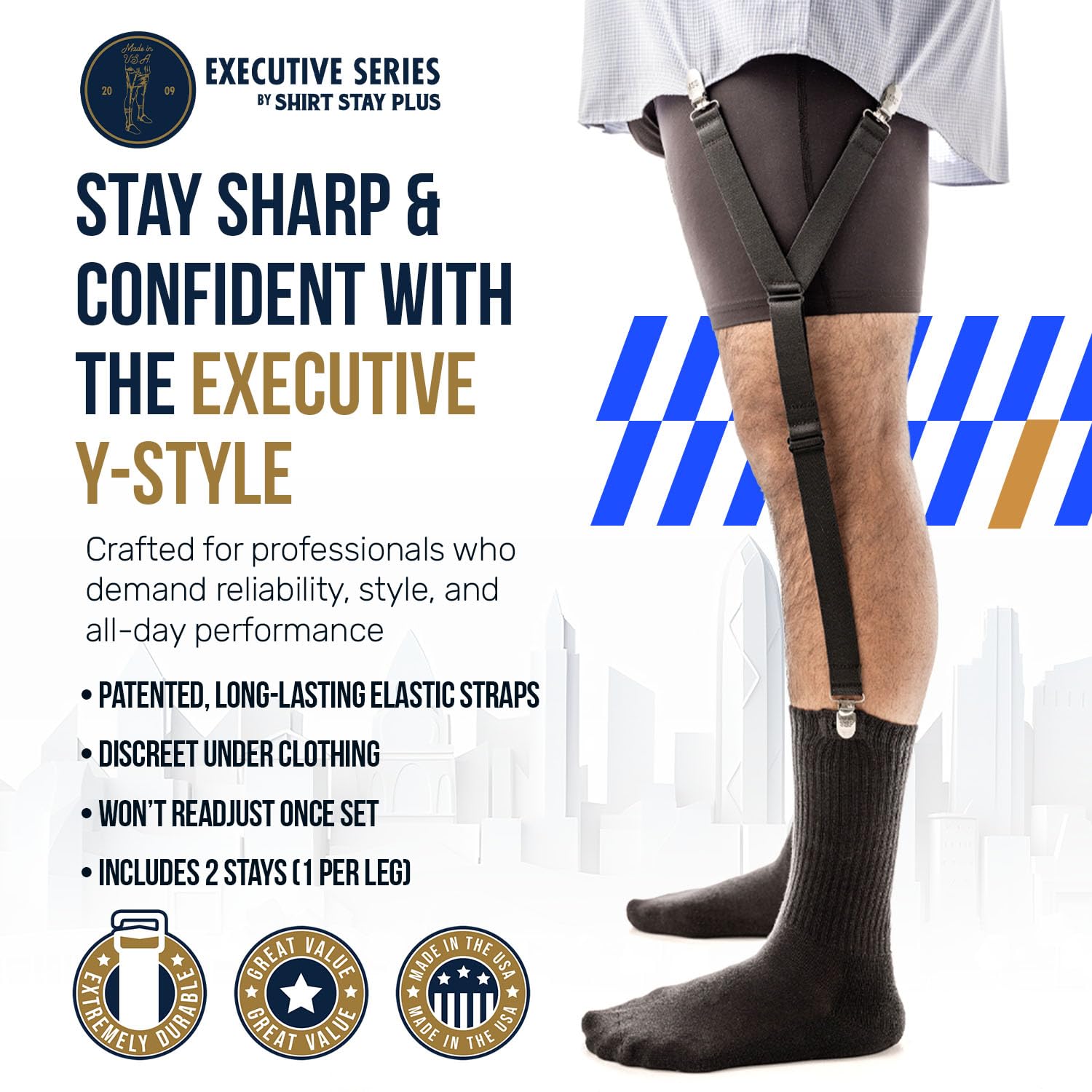 - Adjustable for Perfect Fit: The Executive Series shirt stays are adjustable, providing a perfect fit for men, police, military, and executives. Each shirt tucker allows for ample adjustment, ensuring a comfortably tucked-in shirt throughout the day. They can also function as sock suspenders (sock garters) by attaching to your socks.