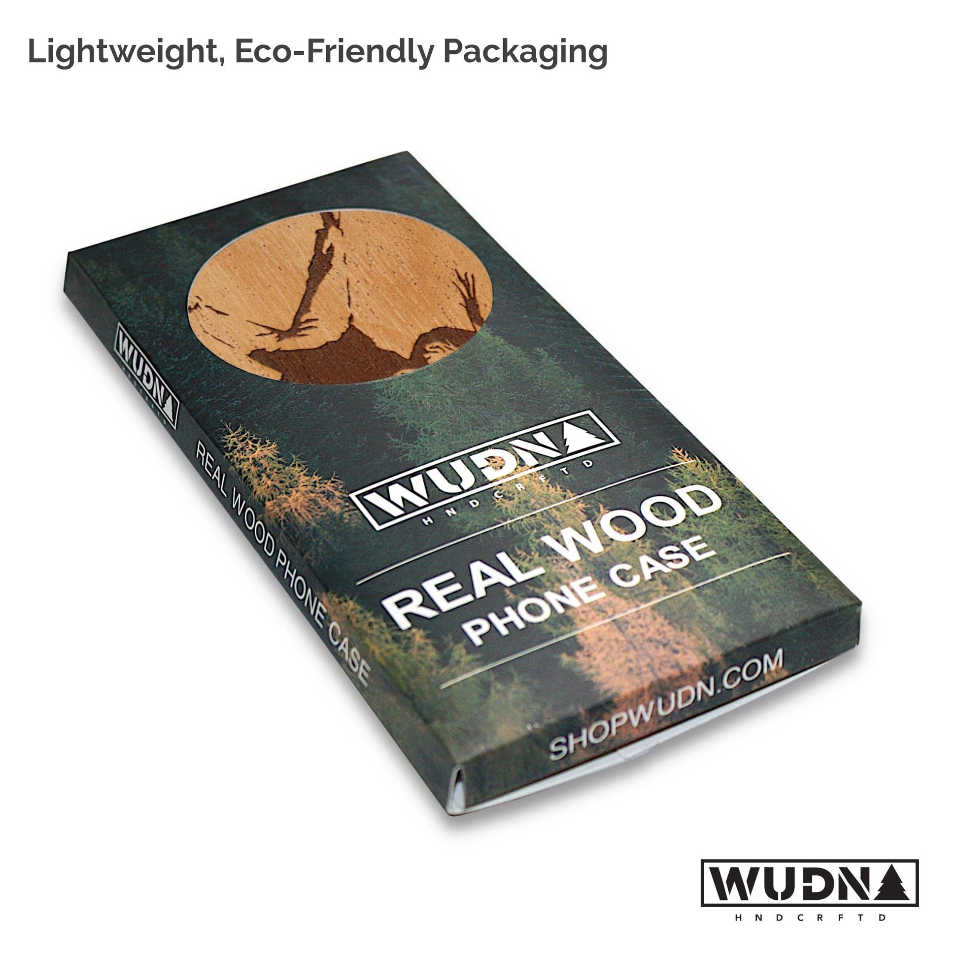 - HANDMADE PHONE CASE - The WUDN wood phone case is real wood with comfortable protective black shell, easy access to all buttons and ports, a large camera opening, and works great with screen protectors.