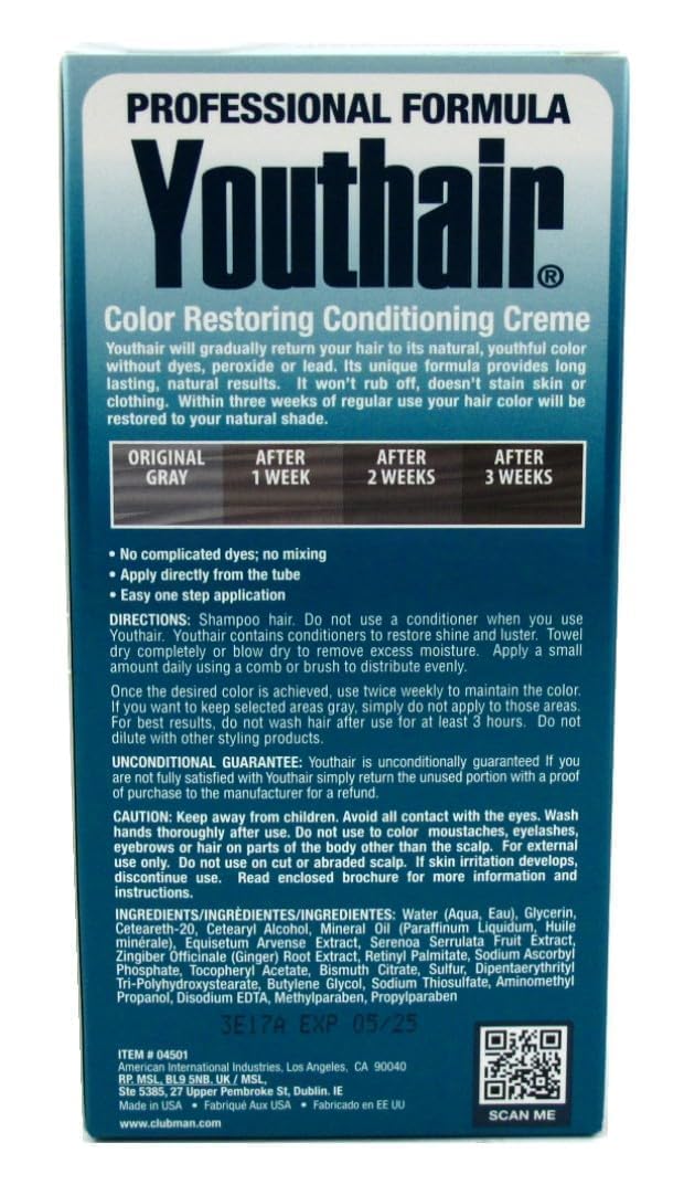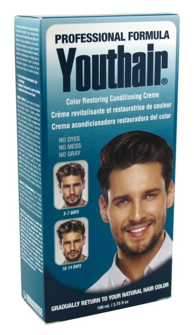 Details: Youthair Professional Formula is a color restoring, conditioning creme for hair that is used by thousands of men to make them look younger.