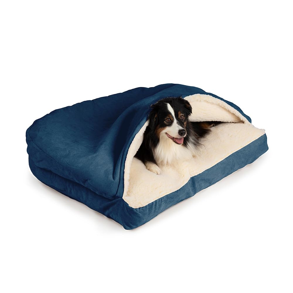 Snoozer Pet Products Luxury Rectangle Cozy Cave Dog Bed with Microsuede, Small, Sapphire