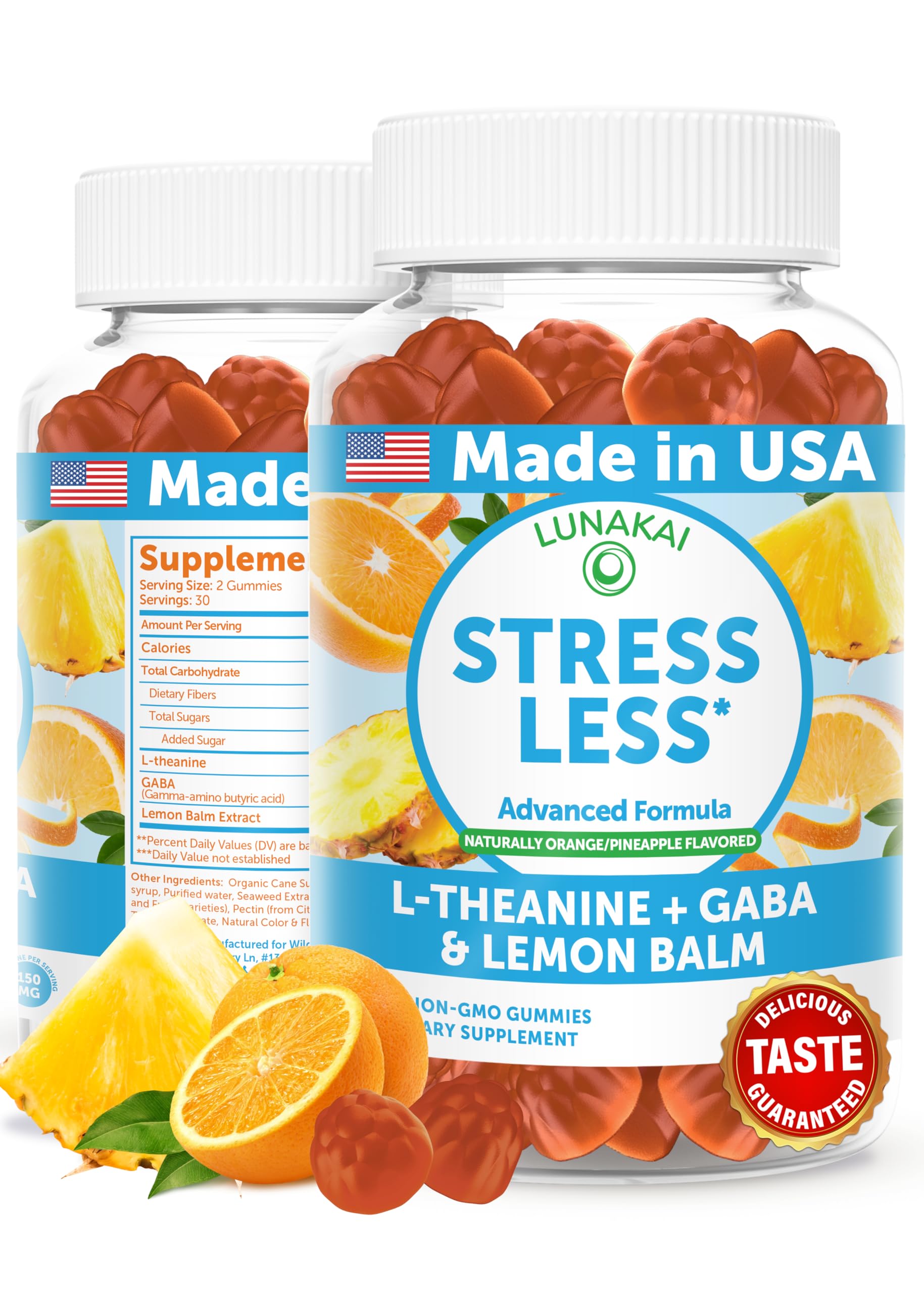 Lunakai USA Made Calm & Stress Relief Gummies – Delicious GABA + L-Theanine Calming Supplement for Adults & Kids – Natural Stress Support, 60ct