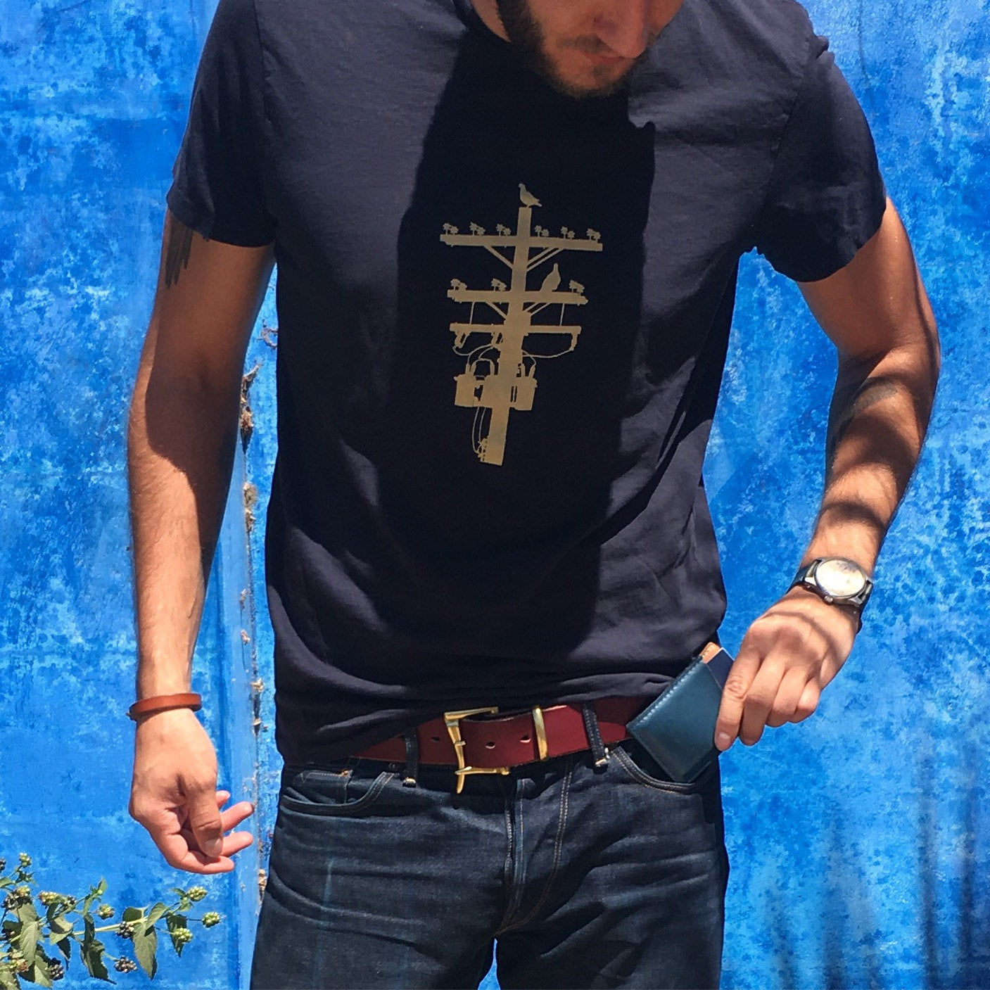 Black and White Pigeon Tree Logo Tee Made in USA T-shirt